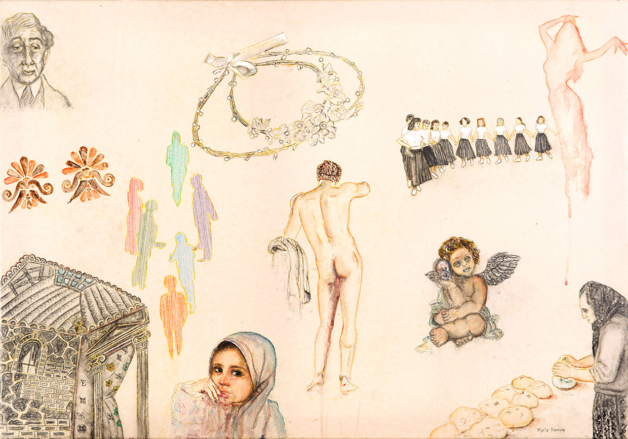 Η συμμετοχη μου Ι , με τη ΒINYIL GALLERY, ISTANBUL- Tίτλος "Μύθοι και ιστορίες , Ι", Λάδι, ακρυλικά και μολύβια σε καμβά, 70 cm*100cm