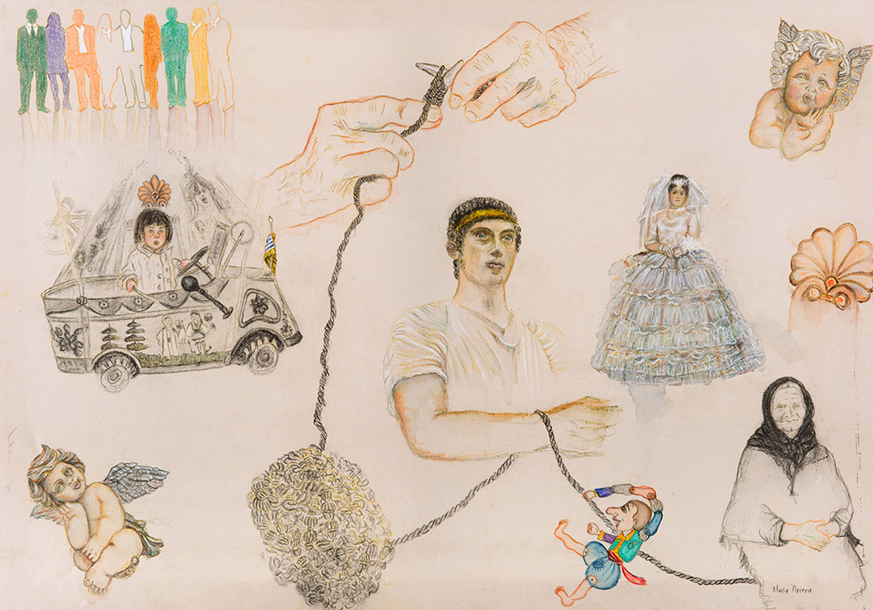 Η συμμετοχη μου II, με τη ΒINYIL GALLERY, ISTANBUL, Tίτλος "Μύθοι και ιστορίες , IΙ", Λάδι, ακρυλικά και μολύβια σε ύφασμα - 70 cm*100cm