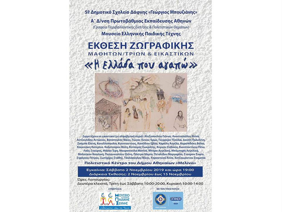 02/11/201930/09/2020Έκθεση ζωγραφικής «Η Ελλάδα που αγαπώ» Εκθέσεις by mariapastra Η αφίσα της έκθεσης Η συμμετοχή μου: "Μύθοι και ιστορίες " Λάδι, ακρυλικά και μολύβια σε καμβά 67 cm * 105 cm