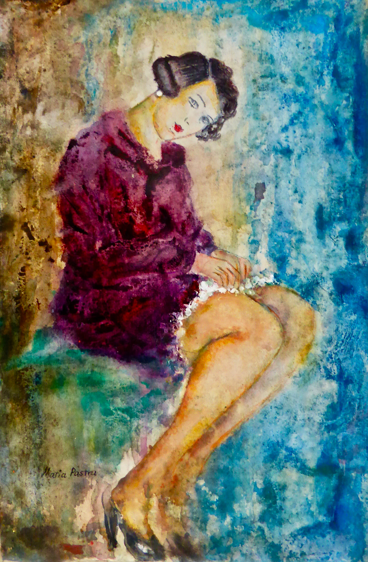 “Ο ήλιος πέφτει πάνω στη τζαμαρία, οι αλανιάρες γάτες αράζουν στο περβάζι μου, το ραδιόφωνο σταθερά στο Τρίτο. Ο μονότονος ήχος του μολυβιού πάνω στον καμβά και η μυρωδιά που αναδύεται από τον λιπαρό γραφίτη επενεργούν πάνω μου όπως οι μεθυστικές αναθυμιάσεις στην Πυθία. Έχω την ανάγκη να ζωγραφίσω κάτι παλιό, κάτι που η πατίνα του χρόνου του έχει αφαιρέσει τις γωνιές και το έχει κάνει γλυκό, ήρεμο και παρηγορητικό.Έξω από το εργαστήρι μου μαίνεται ο νέος «πόλεμος» , αλλά εδώ μέσα, ευτυχισμένη και προστατευμένη, συνυπάρχω με τα πλάσματα του νου και του χεριού μου σε ένα άχρονο σύμπαν χωρίς κινδύνους”.
