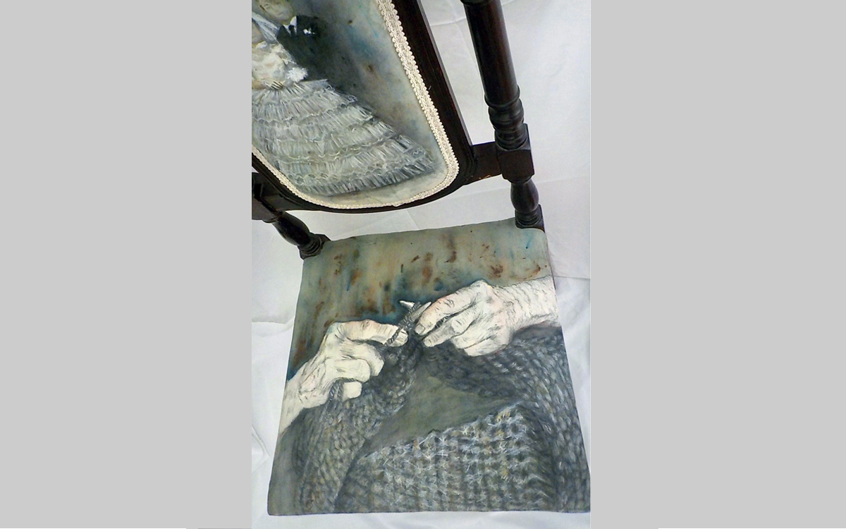 “Topologies” here are characterized by personal or communal memory and memory itself is carried along by its own “topologies” in the work of Maria Pastra who fixed a topological small-universe of personal memories in the common objects, “the furniture” of a familiar place (topos), “the home”. It is in the action of siting-around either in anticipation of the future or in resting from the past, that Maria’s “furniture” stand for our lives; common, predictable and familiar. A common “thread” to the concept of sitting as in a fixed topological-stigma, that of the home, is “woven” again this time in the daily actions of her characters through their hands. Working-hands that weave their past and their future stories. Lyrical images are projected as the energy of all people that existed in the past and will exist in these latitudes and longitudes in the future.